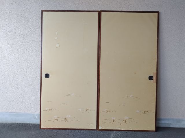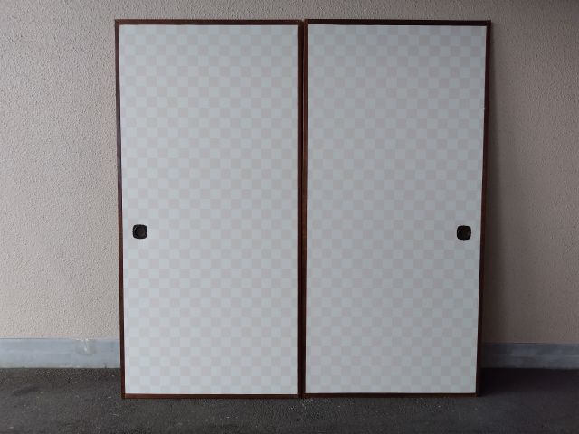 かなり古い建具で下地が塩ビ合板と言うものが使ってあり、襖紙を貼っても引っ付かないため、紙が剥がれた状態になってました。今回は新しい襖を製作して納品しました。